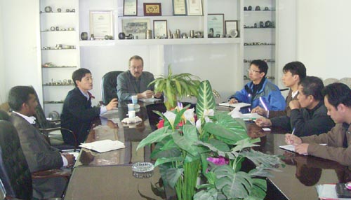 2007年10月19日歐洲客戶來公司考察,洽談轉(zhuǎn)盤軸承項(xiàng)目。