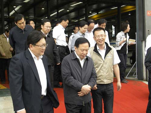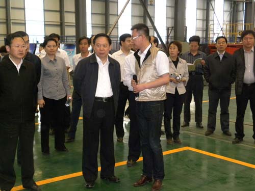 公司董事長(zhǎng)王迪向郭洪昌市長(zhǎng)介紹公司生產(chǎn)現(xiàn)場(chǎng)