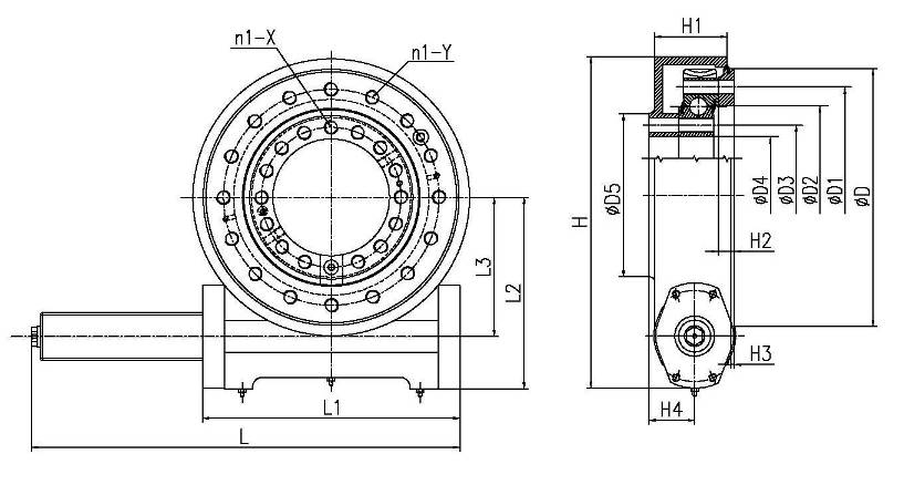 軸向額定靜負荷徑向額定靜負荷軸向額定動負荷徑向額定動負荷LL1L2L3H2H3H4ΦDΦD1ΦD2ΦD3ΦD4ΦD5n1-Yn1-XHH1
