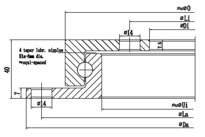 Home > Products > Four point contact ball slewing bearing (with flange) > Four point contact ball slewing bearing (with flange)