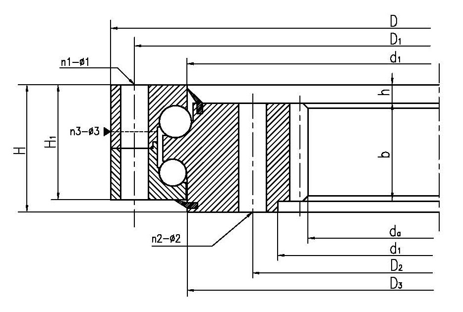 > Different diameter double-row ball four point contact slewing bearing > Different diameter double-row ball four point contact slewing bearing (internal gear type)